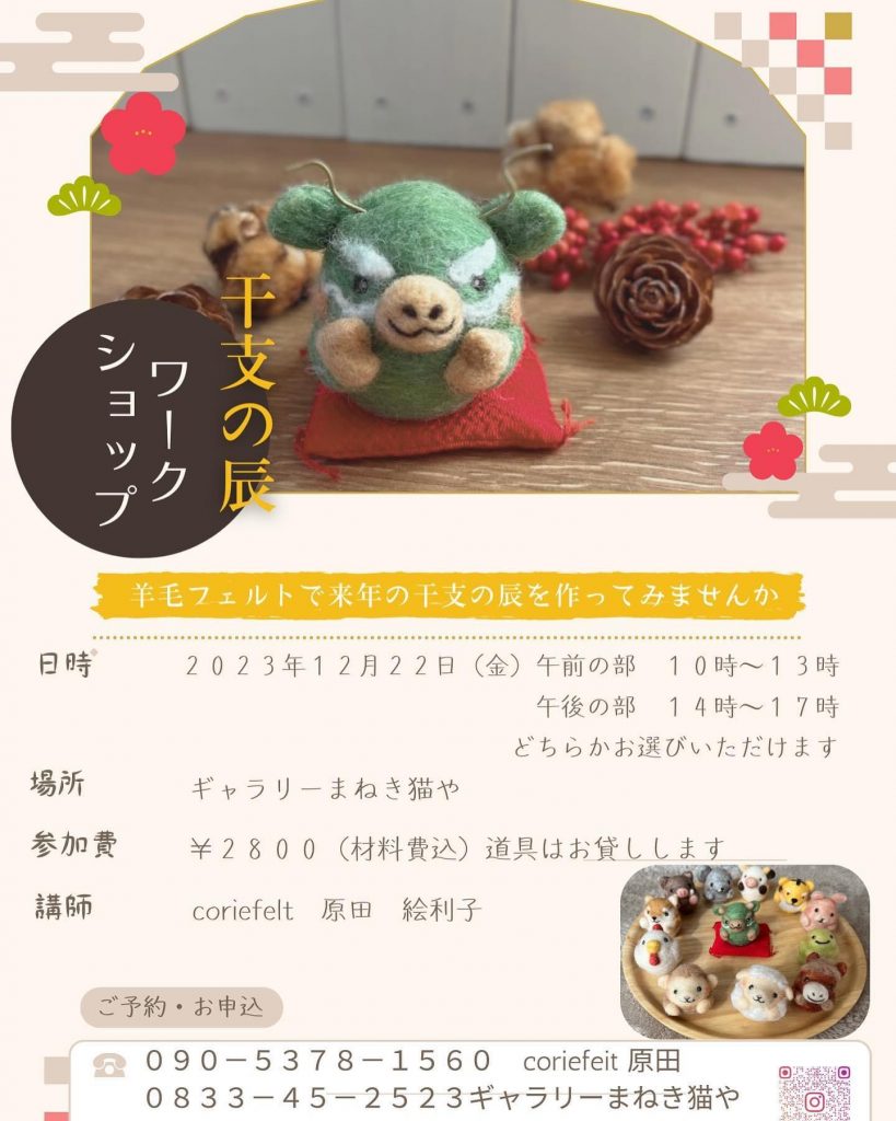 ■ お申込・お問合せ:①090-5378-1560、Instagram ID@CORIEFELT /coriefelt 原田